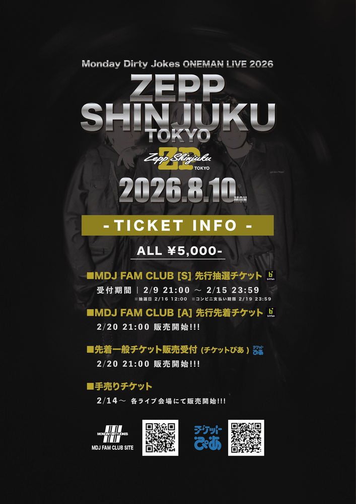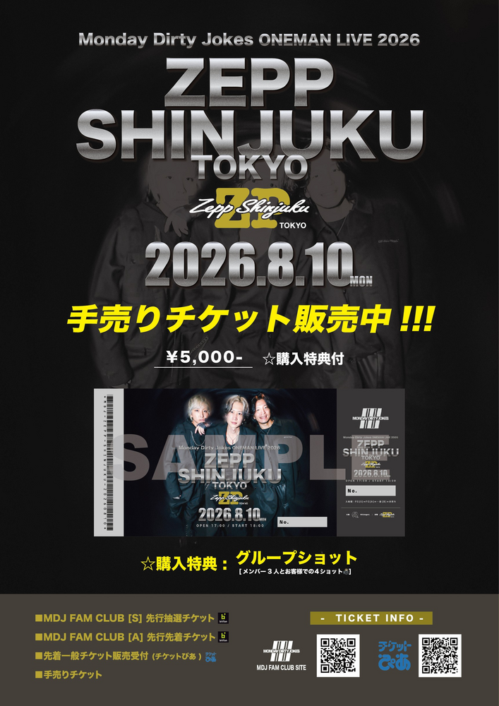 Monday Dirty Jokes ONEMAN LIVE 2026 in Zepp Shinjuku チケット詳細解禁🎟️‼️✨