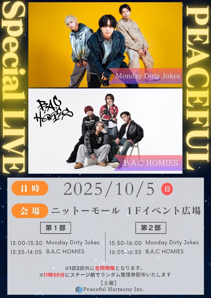(埼玉)PEACEFUL Special LIVE LIVE SCHEDULE 2025/10/05(日) ニットーモール 地図を表示 埼玉県にて開催されるイベントに Monday Dirty Jokes出演‼️✨ / 🗓️10/5(日) 「 PEACEFUL Special LIVE 」 🕒1部 13:00〜 / 2部 15:30〜 📍ニットーモール 1Fイベント広場(埼玉) ⭐️観覧無料 \ MDJ埼玉2daysです✊🏻 ぜひ皆様お気軽にお越しください🙌🏻✨ URLをコピーする 報告する